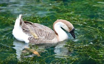 它们的羽毛白白的可真漂亮,在绿绿的水里游啊游,就好像浮在水面上的小白船(白毛浮绿水)